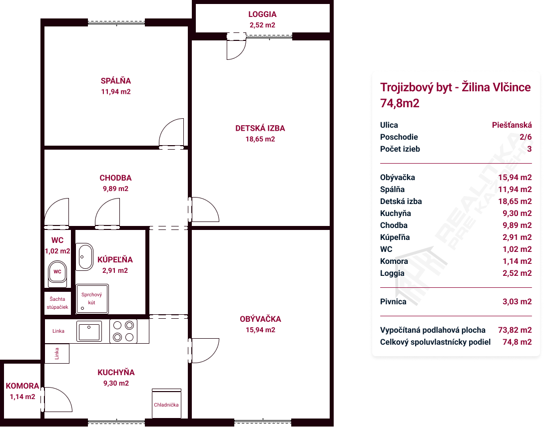 Tento byt bude ideálny pre rodinu s deťmi, keďže má tri veľké izby a loggiu, ktorú je možné využiť na relax v spojitosti s príjemnou lokalitou na Vlčinciach.